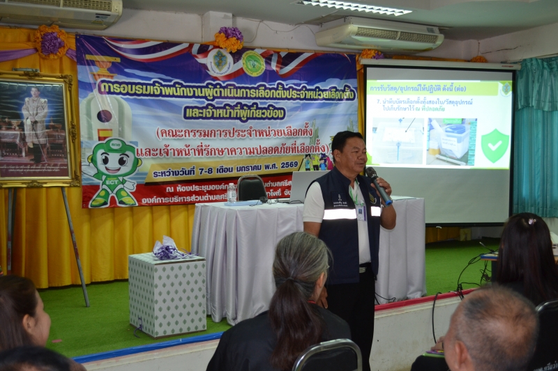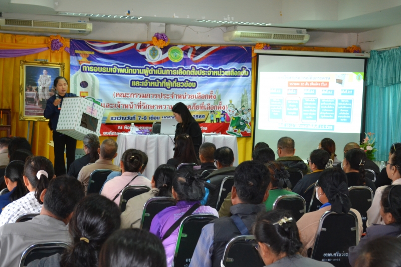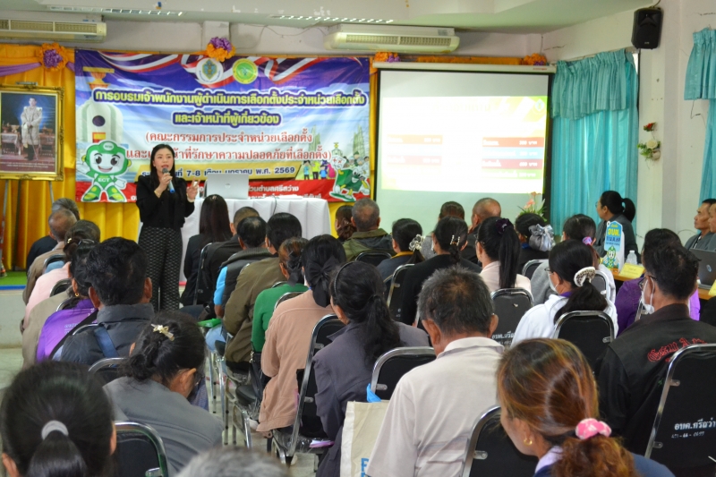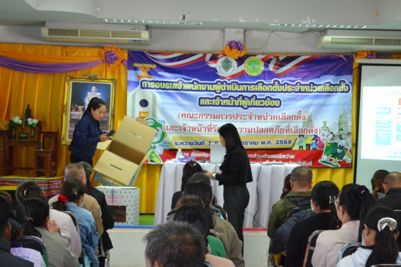 การอบรมเจ้าพนักงานผู้ดำเนินการเลือกตั้งประจำหน่วยเลือกตั้งและเจ้าหน้าที่ผู้เกี่ยวข้อง(คณะกรรมการประจำหน่วยเลือกตั้งและเจ้าหน้าที่รักษาความปลอดภัยที่เลือกตั้ง) ระหว่างวันที่ 7-8 ม.ค 69 ณ ห้องประชุม อบต.ศรีสว่าง