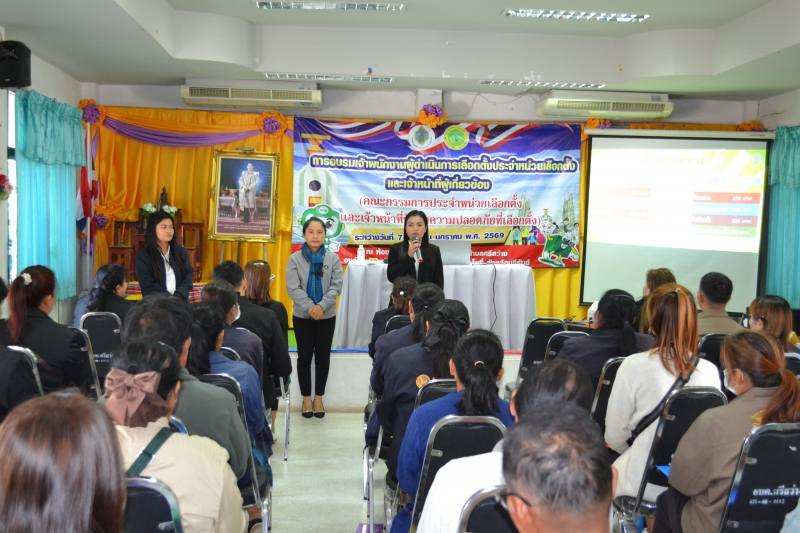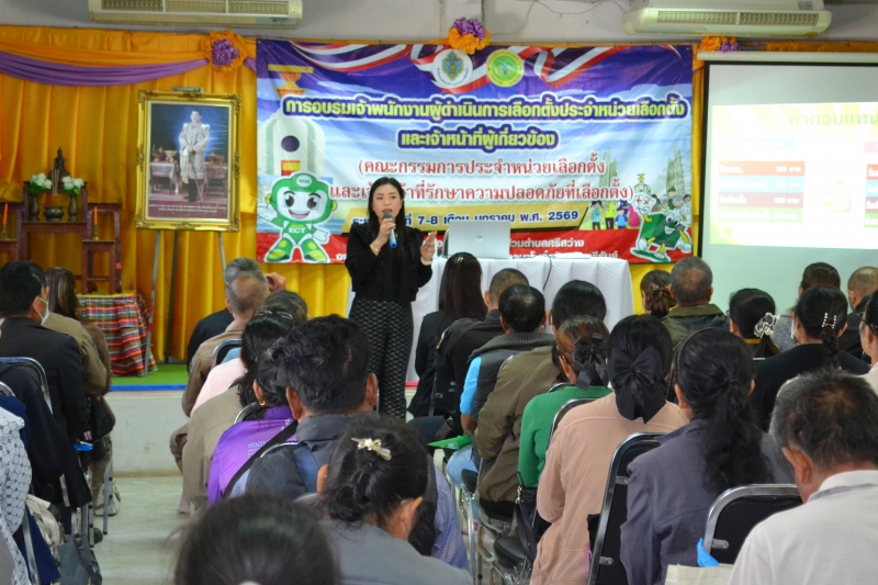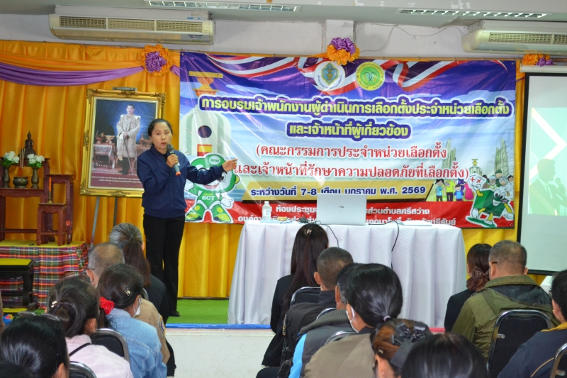 การอบรมเจ้าพนักงานผู้ดำเนินการเลือกตั้งประจำหน่วยเลือกตั้งและเจ้าหน้าที่ผู้เกี่ยวข้อง(คณะกรรมการประจำหน่วยเลือกตั้งและเจ้าหน้าที่รักษาความปลอดภัยที่เลือกตั้ง) ระหว่างวันที่ 7-8 ม.ค 69 ณ ห้องประชุม อบต.ศรีสว่าง